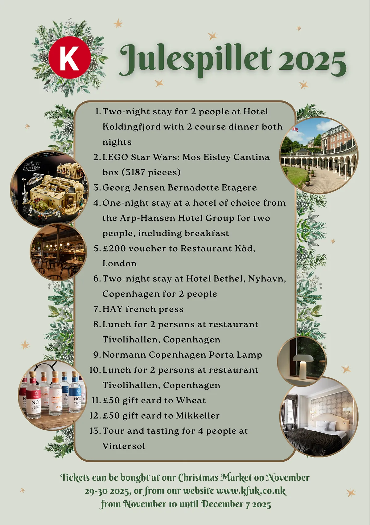 Når du spiller med i Julespillet, støtter du Dansk KFUK i London. Alle præminerne er sponsoreret og indtægten går derfor direkte til vores arbejde med at støtte unge danskere i London.